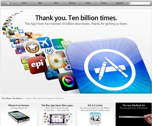 Tienda de apps de Apple alcanza los 10 mil millones de descargas